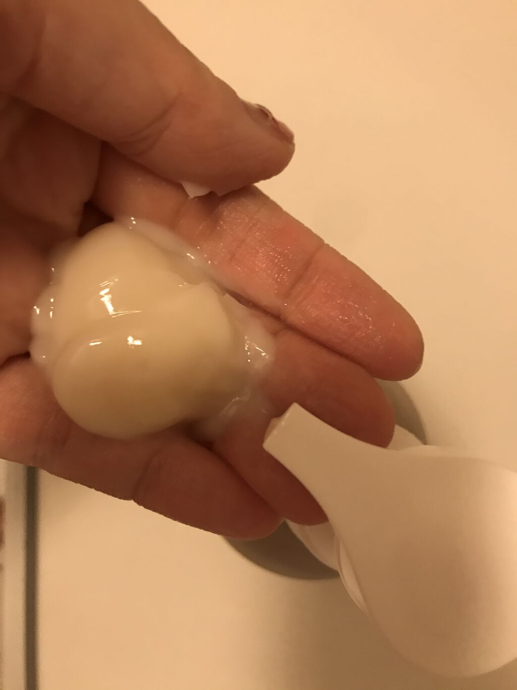 贅沢に美容成分を配合しているクリームは思ったより軽く、みずみずしく、素肌によくのびます。べとつきはしないかな。 プッシュしてエアレスボトルから新鮮なクリームが出てくるから量も調節しやすい🙆♀️ クリームはジェルのようにみずみずしいよ。少し高級化粧品によくあるような独特の香りがします。 ピンク色のエアーレスのボトル プッシュするとクリームが出てきます。