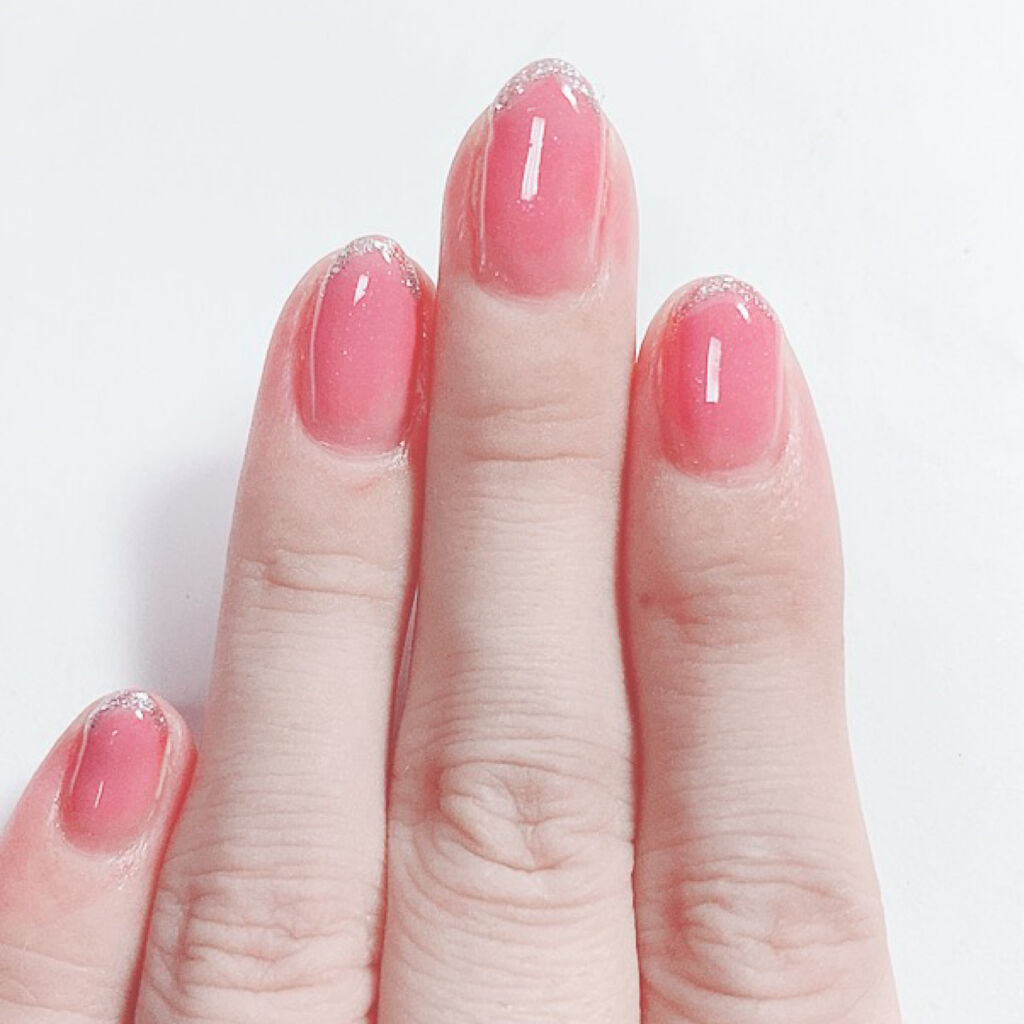 ✴✴パラドゥミニネイル2色を使って縦グラデネイル🩷🩶ベースにネイルファンデーション使っています。①ピンクを爪の半分に塗る↓②乾いたら残りの半分にグレーを塗る↓①②をもう一回重ねる↓好きなキラキラを爪先に乗せる✴どっちも薄付きなので、これだけで...