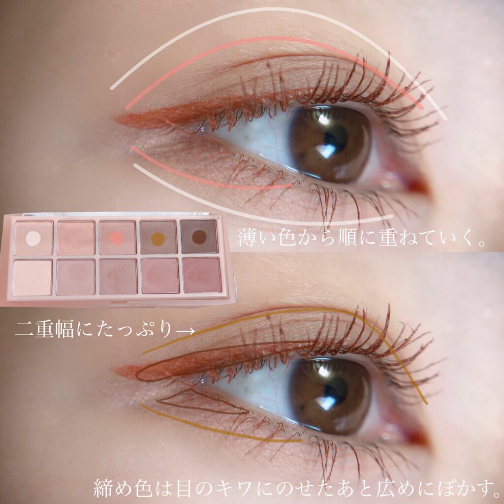 ベースメイクをパウダーファンデでなるべく薄めにしあげています。あまりにも粉っぽくベースを仕上げるとマットアイシャドウの付きが悪くなりそうな気がするので(なんとなく)…😅 パレット左上のベースカラーだけはアイシャドウブラシ(大)それ以外は(小)のブラシで塗っています! 涙袋の影は付属のブラシの細い方で。仕上げに涙袋に左上のベースカラーを少しのせると涙袋がふっくら見えてオススメです◎!