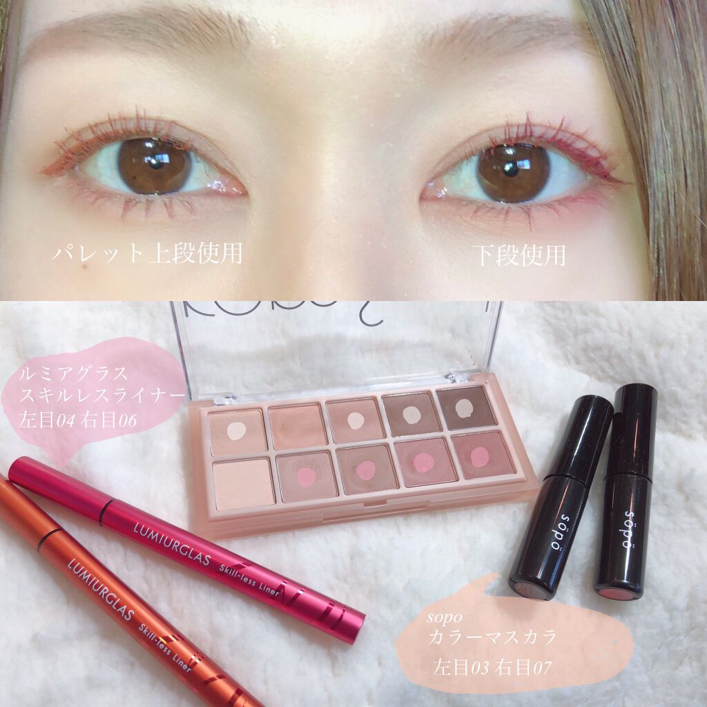 よくパレットのなかで明るいカラーをベースにまぶたに広く塗ることが多いのですが、パール感のあるカラーを避ける🙆♀️! パール感たっぷりの明るいカラーは涙袋に使うぐらい光を集めてぷっくり見せてくれるので、まぶたに広く使うと腫れぼったく見えがち😓 目元を明るくみせてくれたり、次に使うアイシャドウをぼかしやすくしてくれるけど、すっ飛ばしてメインのカラーを塗っちゃう✊🏻❤️🔥 涙袋にはたっぷり塗ってぷっくり見せる🙆♀️💕 シルキースフレアイズのマットタイプはすごく優れているな〜と感じました☺️💗 赤やオレンジなどは、入れすぎると腫れぼったく見えやすいので、見せたいカラーは下まぶた目尻にのせて色をたのしむ♡♡ パール感なしの透けマットだけじゃ物足りない… そう感じさせない華やかなラメが左上に入っているので黒目上と涙袋にのせるとすごく可愛い仕上がりに😍! 厄介な左右差のお陰でマットアイシャドウが好きになりました😌💕