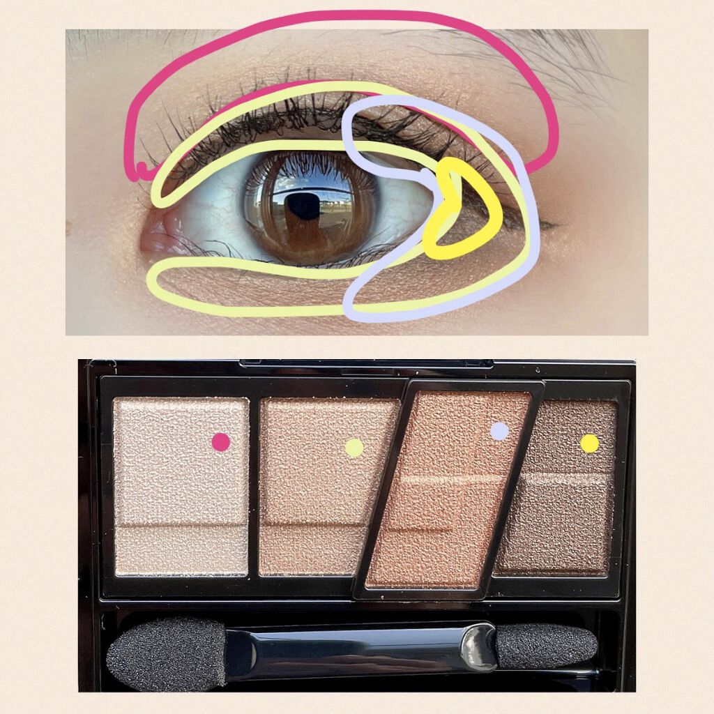 - カラーニュアンスシェードを目尻に入れるだけで目幅を大きく見せ※、抜け感のある明るい大きな目元に仕上るブラウンアイシャドウ。 ブラウン×カラーニュアンスの4色セット。※メイクアップ効果
