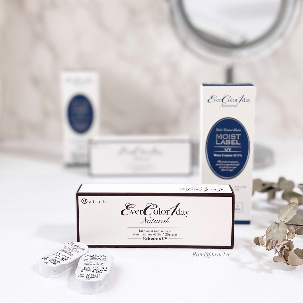 毎日盛れる私に🙈💓エバーカラーワンデーナチュラルパールベージュ、パールスノーグレー、ひとめぼれの恋20枚入り ¥2,598エバーカラーワンデーナチュラルモイストレーベルUVティアーミューズ、ローズミューズ、ブラウンマリアージュ20枚入り ¥2...