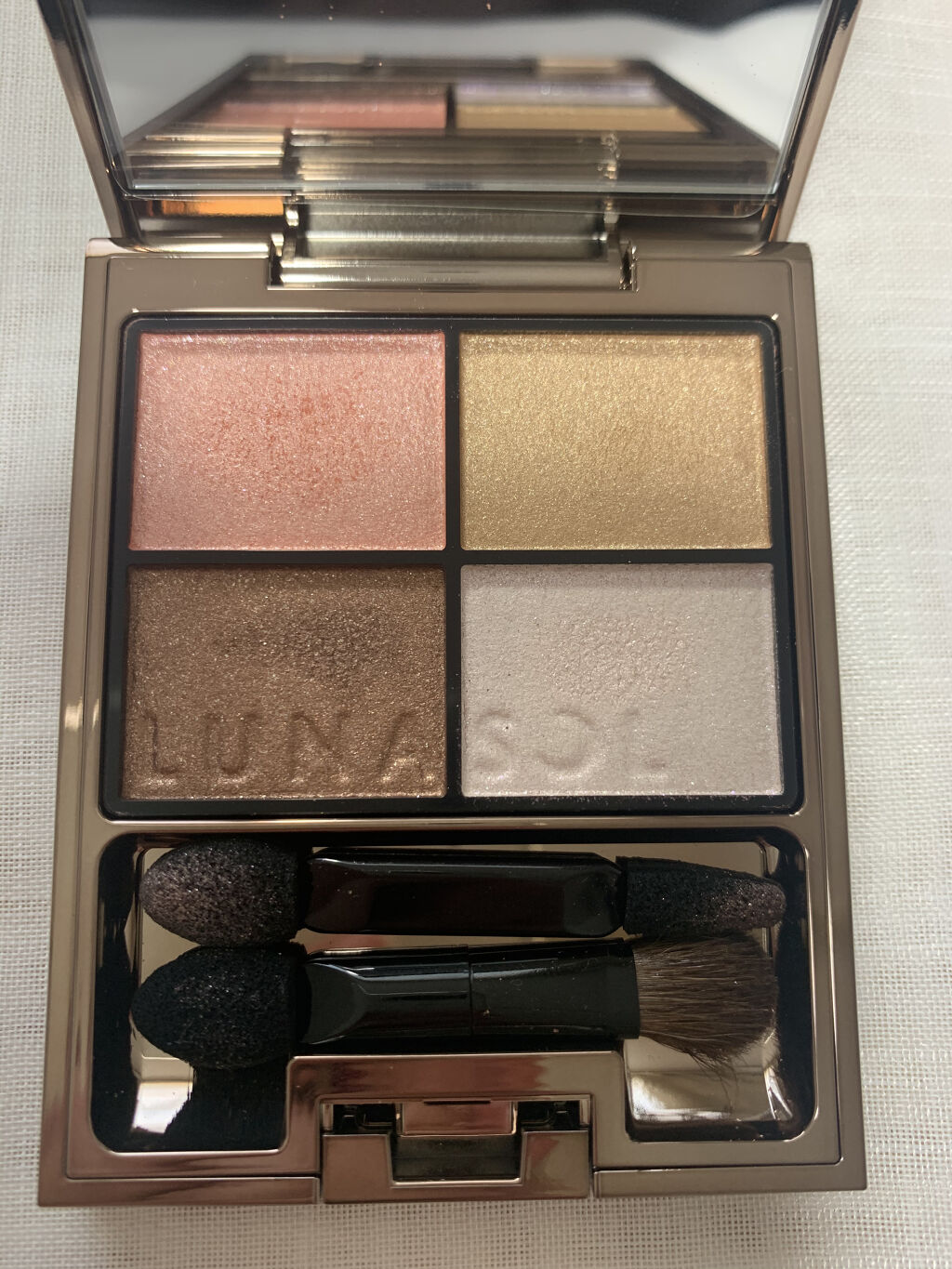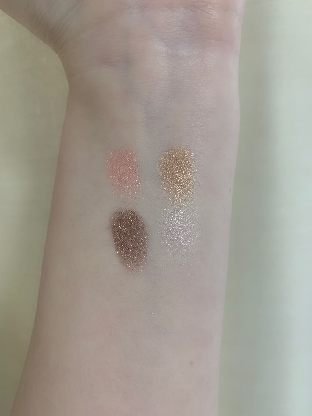 ブラウンのアイシャドウって年齢関係なく使えるからめちゃくちゃいいですよね! このアイシャドウはナチュラルに盛れるし、どんな肌色の方でも使えるカラーだと思います! ベースカラーです。ベージュカラーでとっても肌馴染みがいいです! 締め色のブラウンですね!他のアイシャドウって締め色が締めすぎって感じしませんか?笑 キラキラっとしたラメです!上2色はほんとにお上品な感じに仕上がるので、もう少しキラキラたしたいなって感じる時に使えます! これはハイライトになってます!このアイシャドウにあったカラーのハイライトなので浮くことがなく、ポーチにこのパレットが入ってるだけでメイク直しが楽になります! 粉飛びすることなく密着してくれて、ナチュラルに盛ってくれます! ほんとデイリー使いしやすいカラーだし、どんな服でも肌色でも年齢問わず使えるカラーです! オレンジとか赤とかカラーメイクすること多いけど、結局なんだかんだこのブラウンのアイシャドウに戻ってきちゃうんですよね笑 そのくらい本当に最高のアイシャドウです!