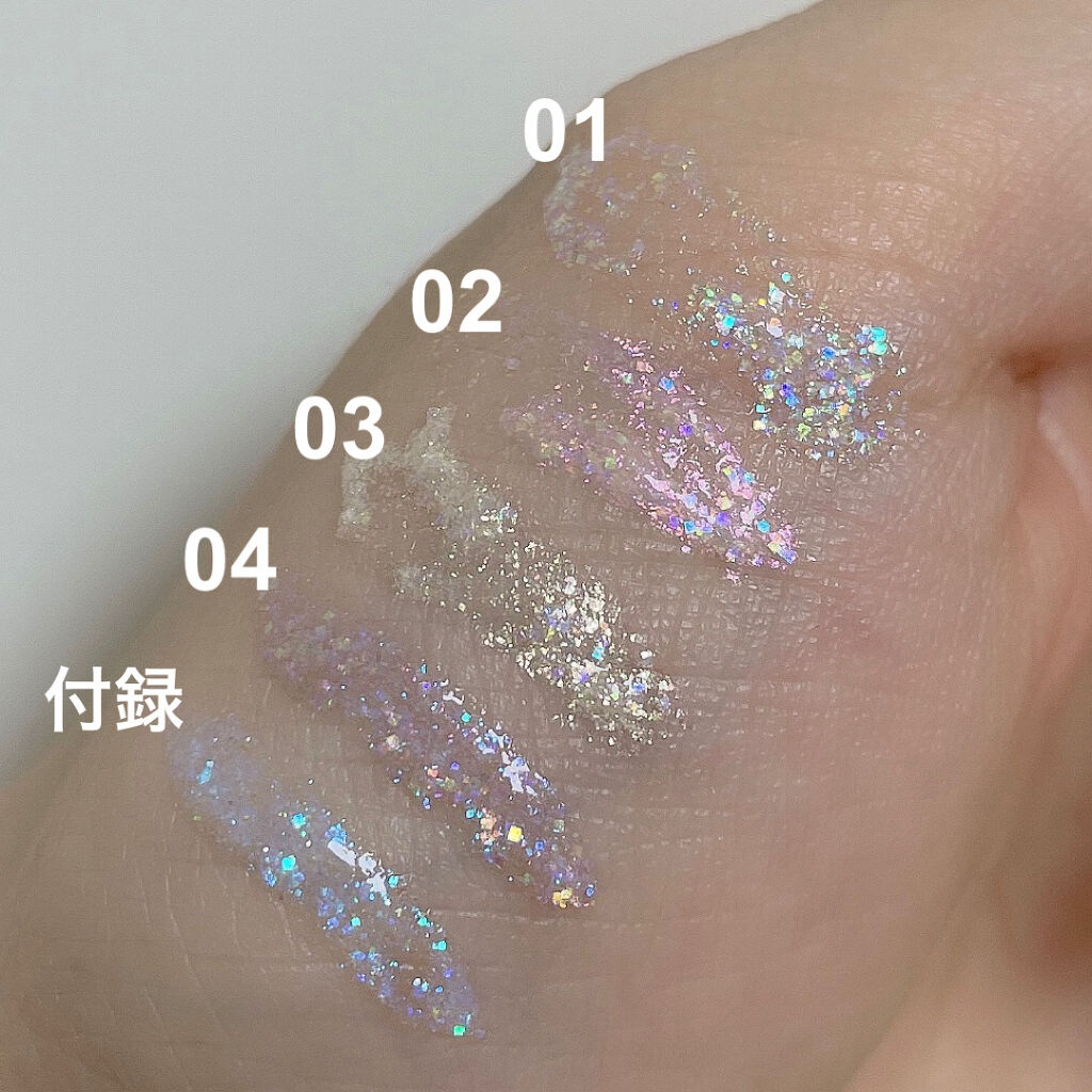| グリッターランキング第4位 | パッと見はホワイトカラー3色ですが、肌にのせると角度によりパープル、ピンク、ブルーの異なる艶めきが楽しめる◎ | 詳細を見る | ||