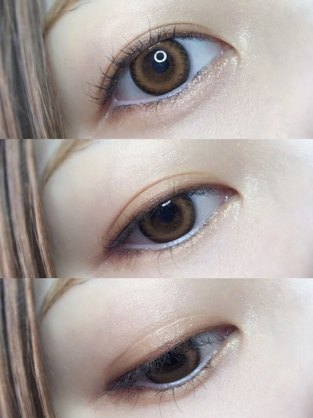 MOLAKプロデュース&イメージモデル宮脇咲良さん▶︎ドーリッシュブラウン3色のトーンで水光グラデーションが瞳に馴染み儚い目元に。細めのふちがあるのでくりっとお人形さんのような瞳に🧸💕水光グラデーションが綺麗すぎて感動した!!元からこの目です...