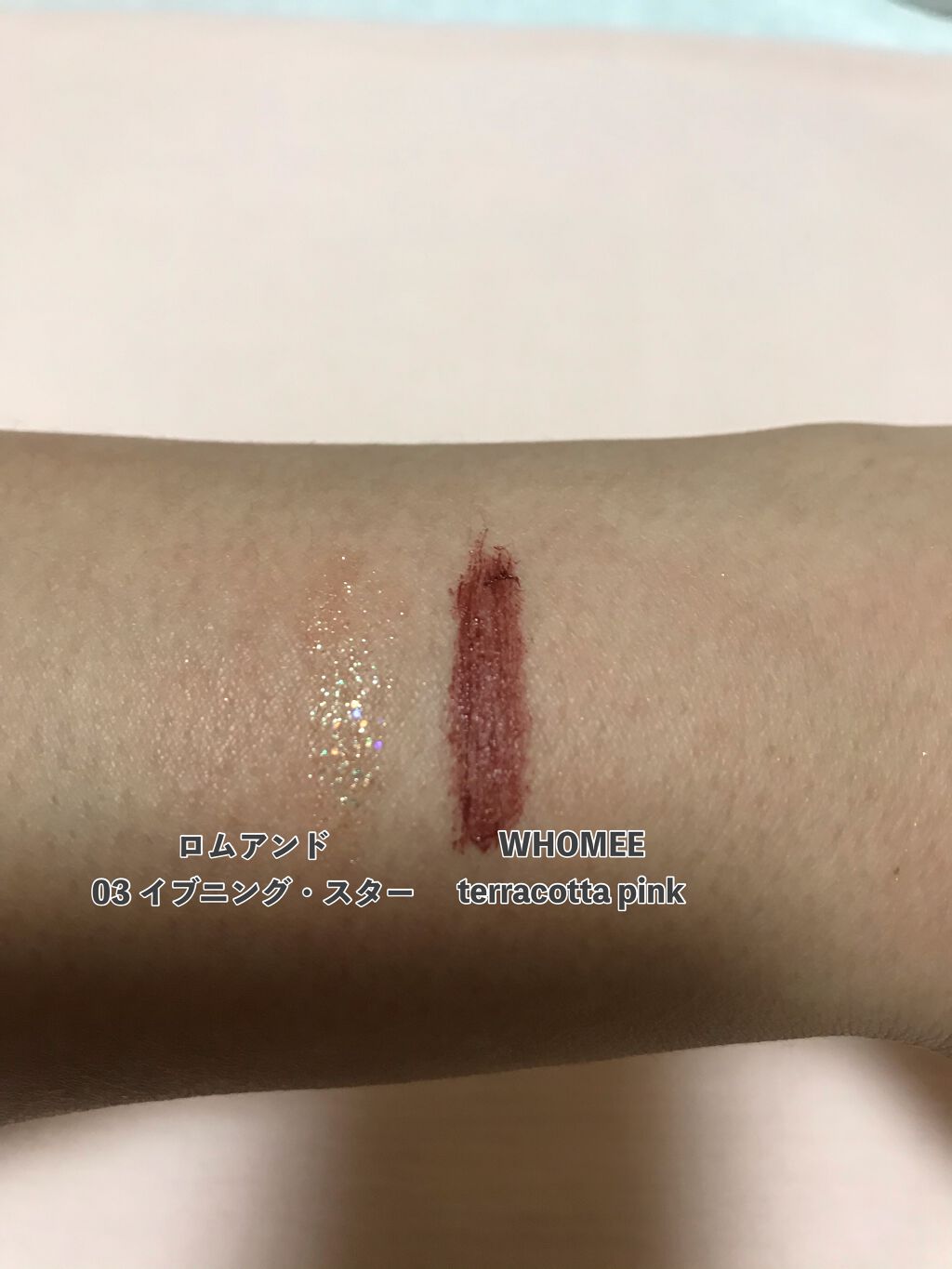 rom&ndリキッドグリッターシャドウ09サンセットクォーツミニサイズで発売されたものをお試しさせて頂きました♡キラキラ度がわかりやすいように太めに涙袋に塗っておりますが、細いチップで塗るので、ピンポイントにラメがつけられて可愛い♡ホワイトゴ...