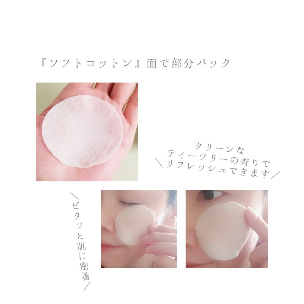 - 肌荒れを予防するティーツリーエッセンス(ティーツリー葉水、ティーツリー葉エキス、ティーツリー葉油の3種類を整肌成分として)を、コットン100%の肌に優しい使い心地のパッドに贅沢にたっぷり配合しております。 片面はエンボスコットン、もう片面がソフトコットンになった「デュアルパッド」になっており、用途に応じての使い分けが可能です。エンボスコットンの面は、手軽に角質・毛穴汚れをオフできる拭き取り化粧水としてお使いいただけます。ソフトコットンの面は、乾燥が気になる部分、肌荒れ予防や集中ケアしたい部分のポイントパックとしてお使いいただけます。 ※2022年9月以降パッケージリニューアル。