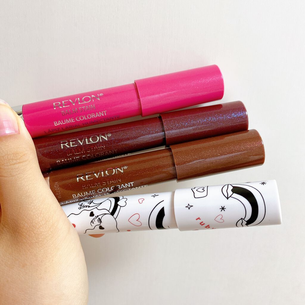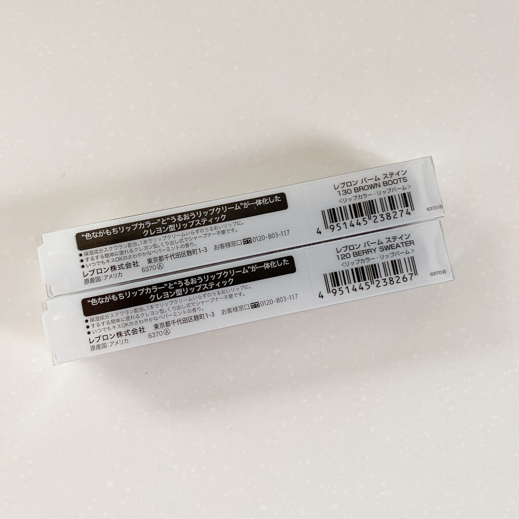 💜REVLONバームステイン120ベリーセーター💜レブロンのクレヨン型リップです💄✨カシスショコラ色に青ラメがキラキラ可愛いカラーです🥰パッケージも同じカラーでラメも入っていて可愛いです💗発色はかなりシアーですが、重ね塗りで色味を調節できます...