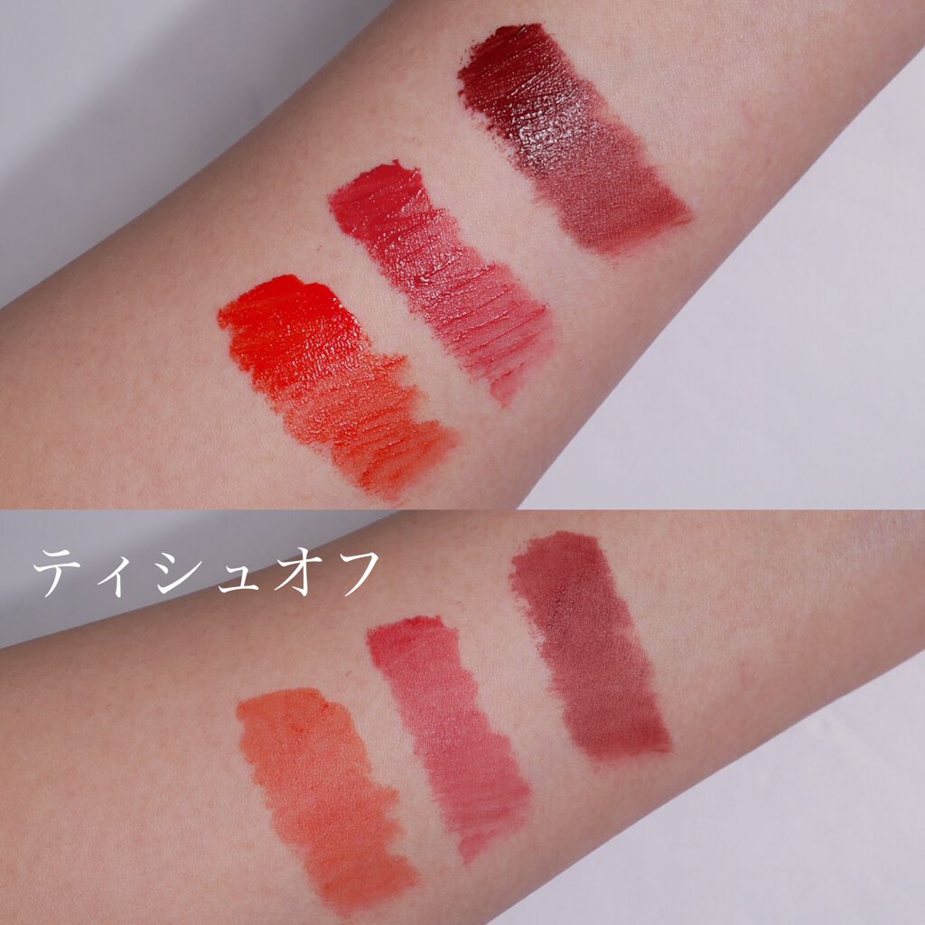 - 唇の内側から発色したような馴染みの良いマットティント。 ふんわり軽く、ベルベットのような肌触りでつけた瞬間一気に女性らしさがアップします。保湿成分もたっぷり配合し、エラストマー機能を採用することでマットなのに乾燥を感じず縦ジワもでにくい質感を実現しました。