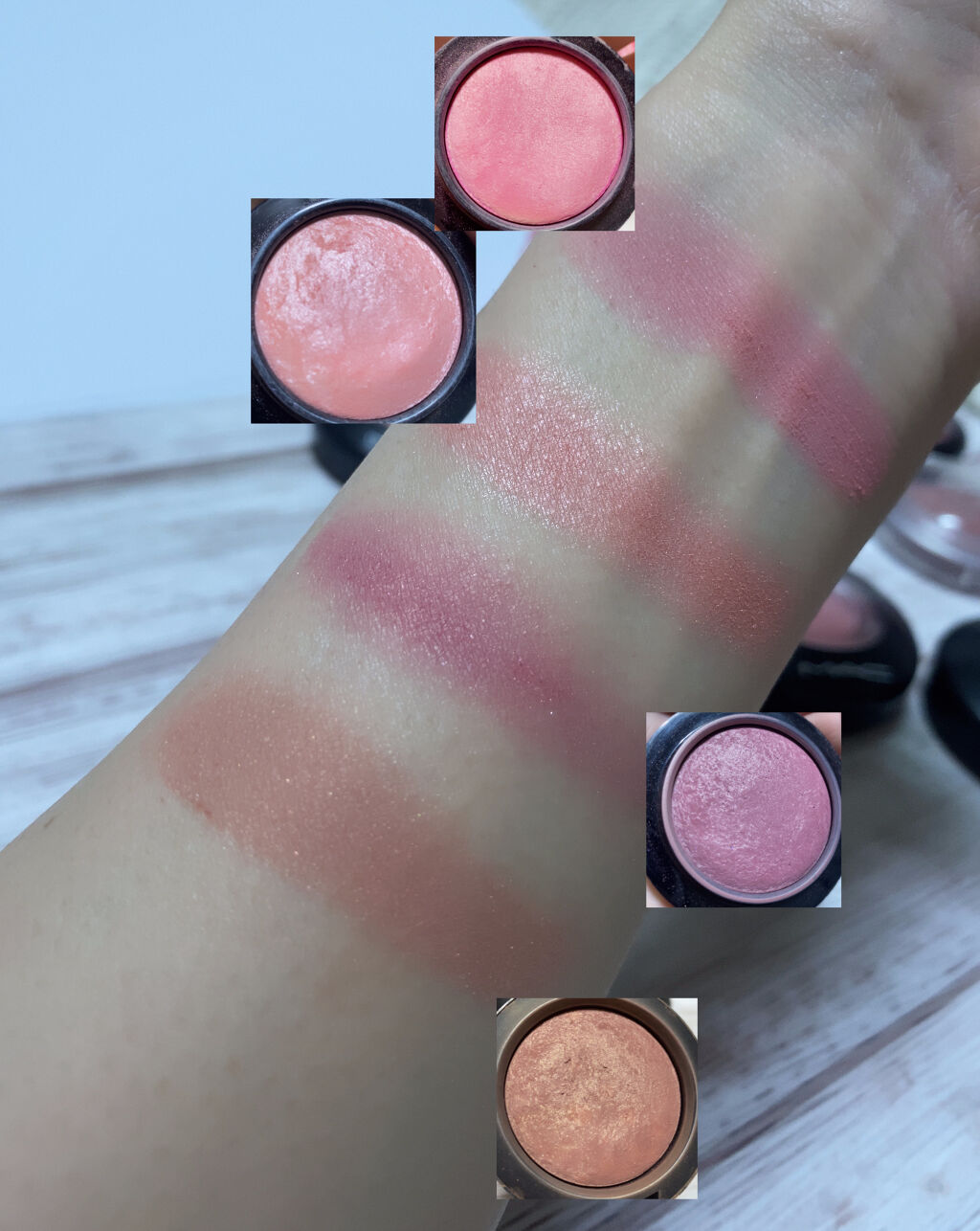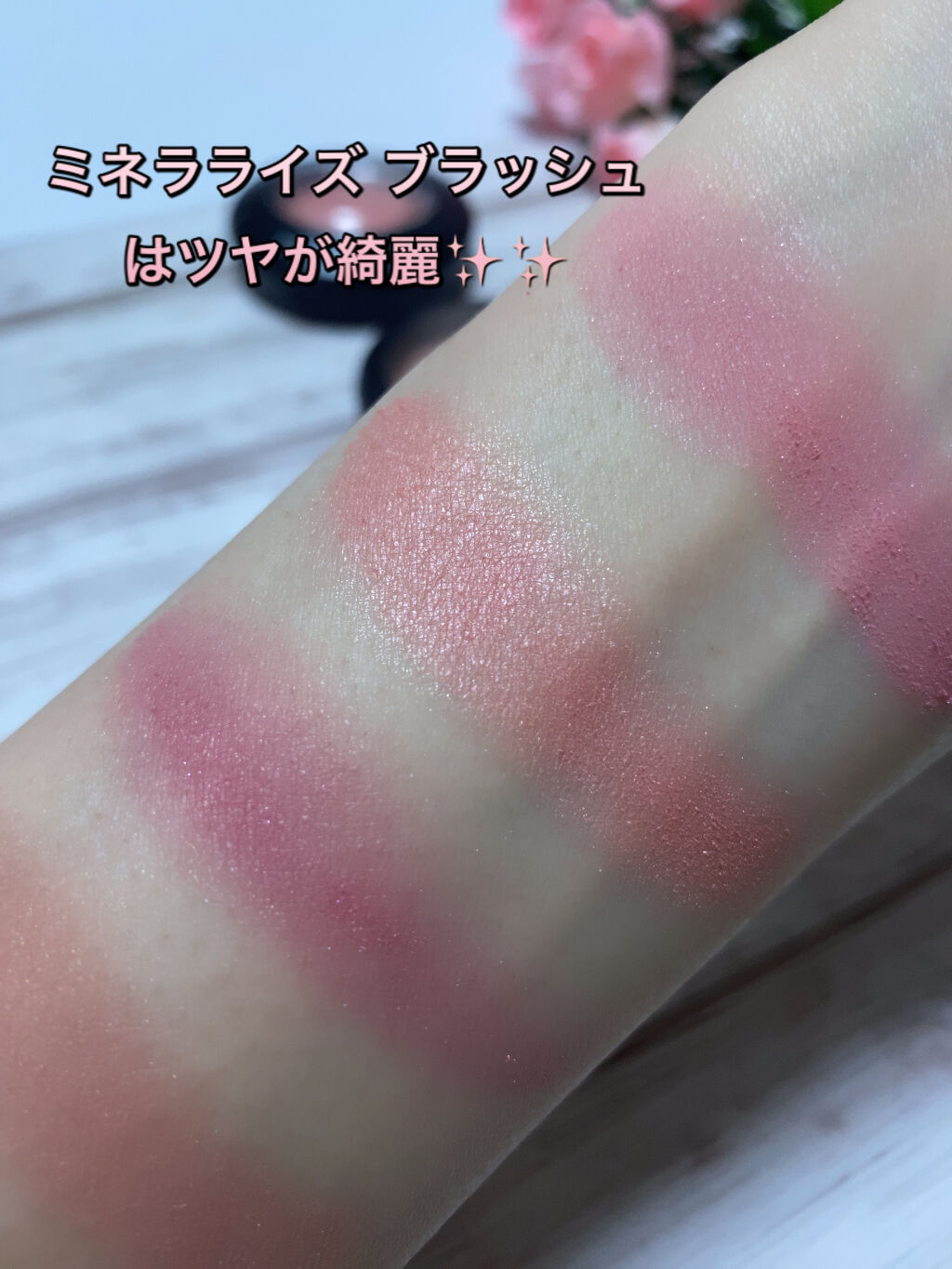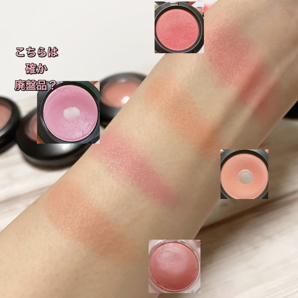 それぞれ、いい色味ですね😍 腕に濃く塗ると違いがよくわかります✨ やっぱMACのチーク華やか〜❤️