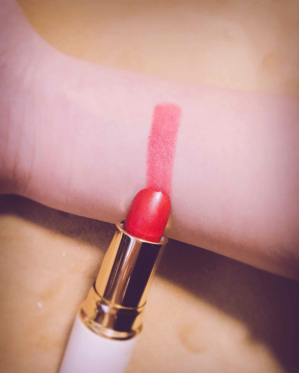 - しっかり色づき落ちにくい口紅。 つけたての鮮やかな発色が長時間続き、唇を美しく彩ります。 保湿成分(スクワラン、ローヤルゼリーエキス)配合で、うるおいを守り、唇のカサつき・荒れを防ぎます。