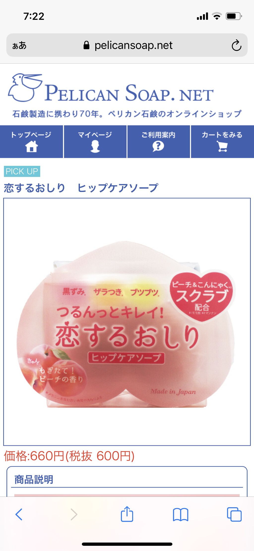 商品詳細情報ペリカン石鹸 恋するおしり ヒップケアソープ