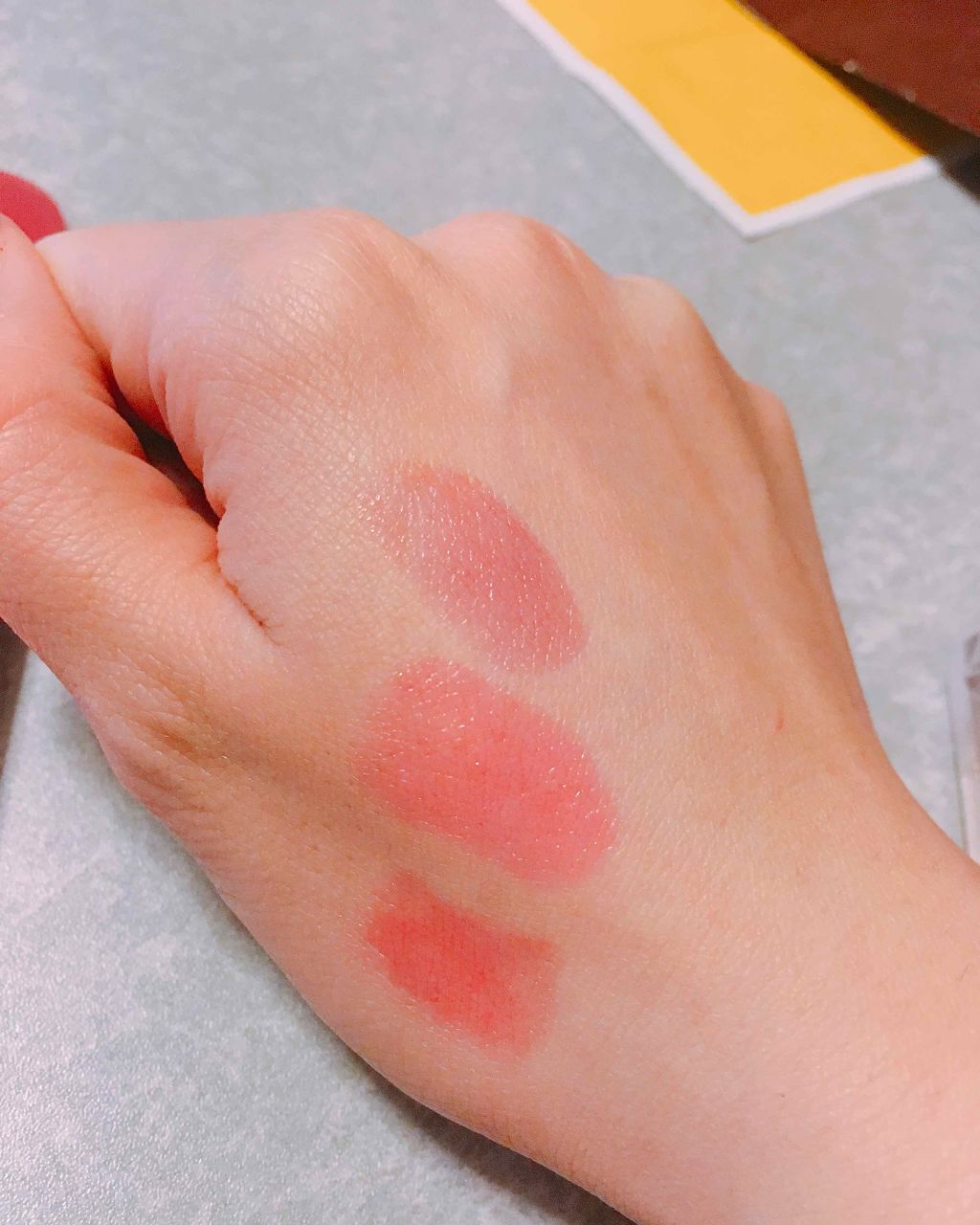 今まで何種類もリップを使ってきましたが、1番お気に入りがこちらです! 色はシアーなオレンジ味を感じるレッドで、落ちにくく、鏡を見なくてもキレイに塗り直せるところが気に入っています! 柔らかくとろける塗りごごちでとても塗りやすいです!