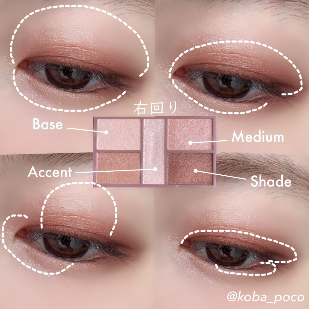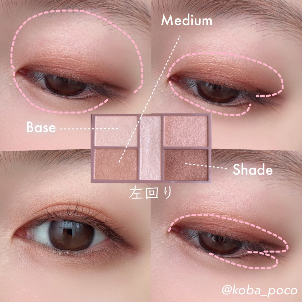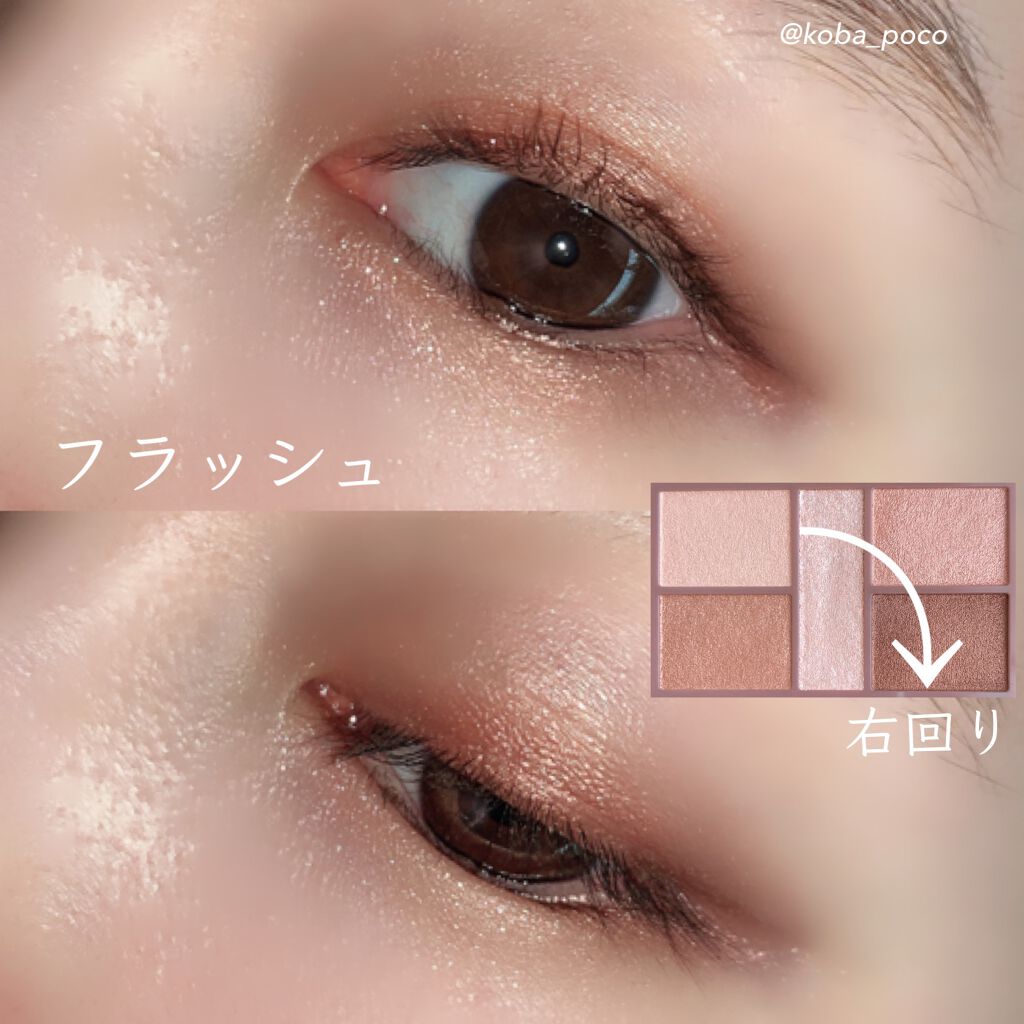 - 1枚のパレットで2つのスタイルが完成! 5色の欲ばりアイシャドウ♥ メインカラーを選んで2つのスタイルが楽しめる! A→B→D でスタイル1 A→C→D でスタイル2 繊細な粉質が、しっとりとまぶたに密着して色落ちを防ぎます。 透明感のあるキラうるトッピングジュエル(繊細ラメ)は、気分によってトッピング!