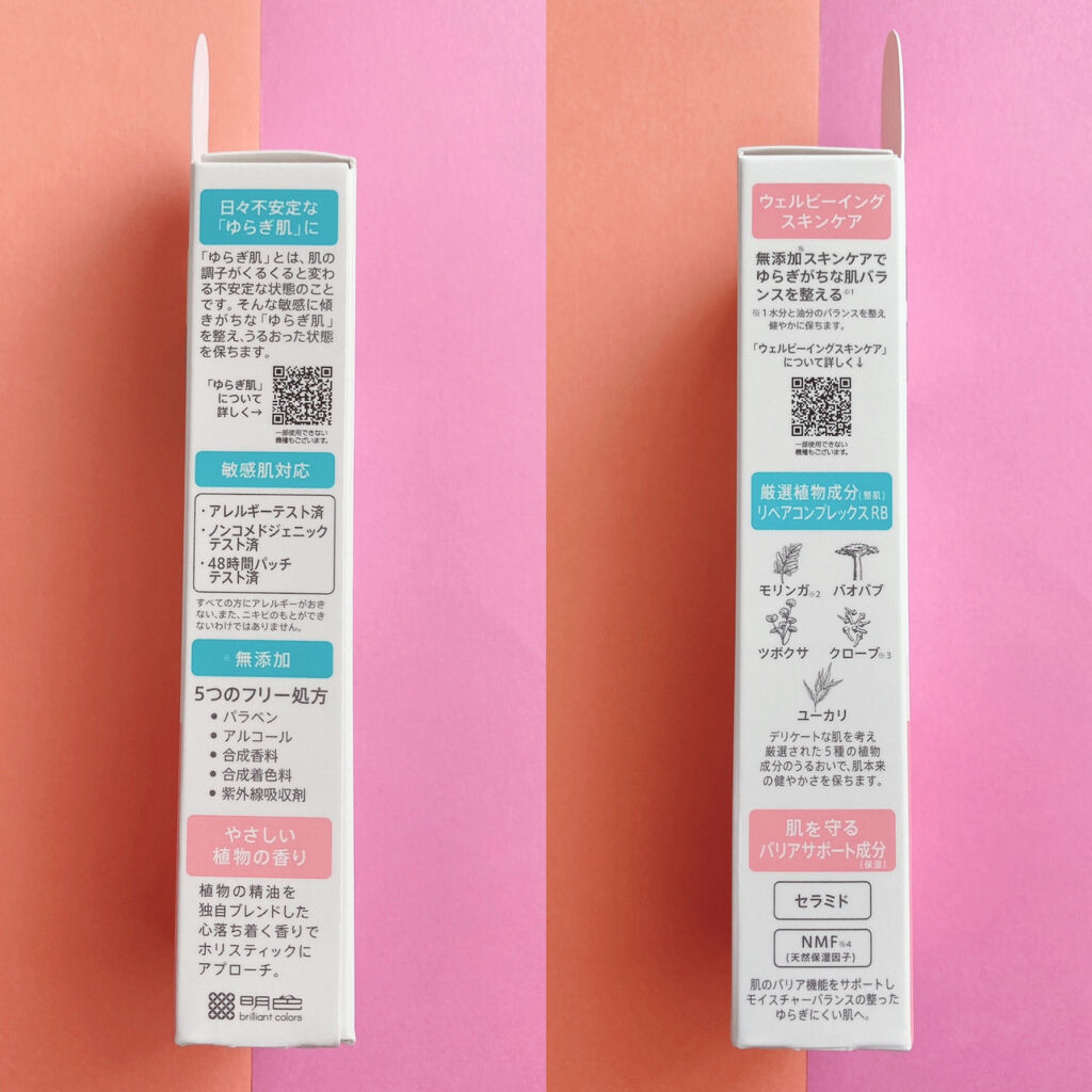 - ノンケミカルのゆらぎ敏感肌向けスキンケアUVベースの新色が誕生!SPF49 PA+++ ①紫外線カット効果 SPF49 PA+++の高い紫外線カット効果 紫外線吸収剤フリーの安心処方 ②健康的な素肌感仕上げ 肌なじみの良いピンクベージュが黄身を消して色ムラをカバー 健康的な血色感を演出し、トーンアップ効果をもたらします ③肌保護効果 肌のうるおいを保つスキンケア効果で、ゆらがない肌に 導きます。