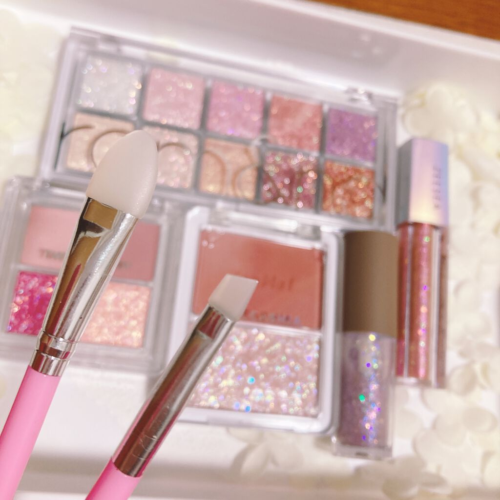 このアイシャドウめちゃくちゃ可愛いし大好きなんだけど😍 明るめコーラルのアイシャドウでラメは繊細なものからザクザクのグリッターまで。 粉質もいいから粉飛びも気にならない! ラメ落ちもしにくいしすごい綺麗なの🐰 他にもたくさんギフトでいただいたんだけど好きすぎて今回はこのアイシャドウのみレビュー🩷 グリッターペディアアイパレットは全部で7色もあって めちゃくちゃ選びたい放題👍🏻 ̖́-
