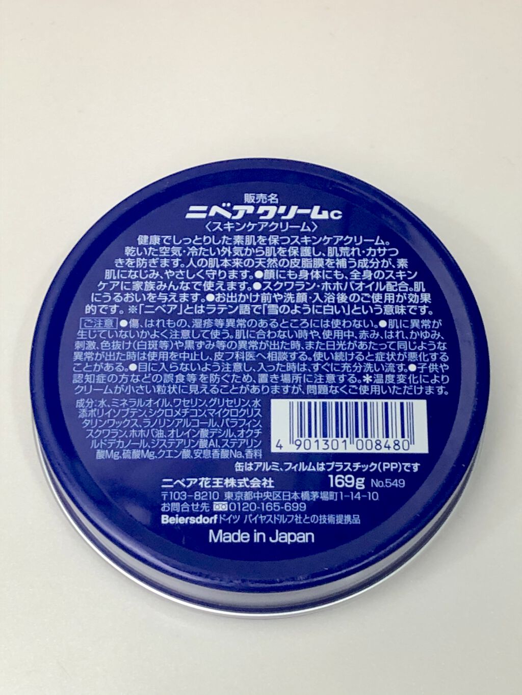 - 健康でしっとりした素肌を保つスキンケアクリーム。 乾いた空気・冷たい外気から肌を保護し、肌荒れ・カサつきを防ぎます。 人の肌本来の、天然の皮脂膜を補う成分が、素肌になじみ、やさしく守ります。 ※「ニベア」とはラテン語で「雪のように白い」という意味です。 ・顔にも身体にも、全身のスキンケアに家族みんなで使えます。 ・スクワラン・ホホバオイル配合。肌にうるおいを与えます。 ・お出かけ前や洗顔・入浴後のご使用が効果的です。 ・容量:169g、56g、50g