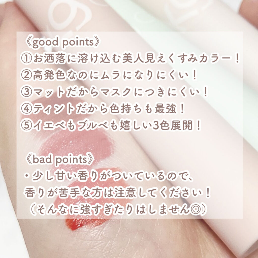| 口紅・グロス・リップライナーランキング第45位 | ぷるんと つやっとしたティントになるのでまさに水彩画のような透け感のある発色 | 詳細を見る | |
