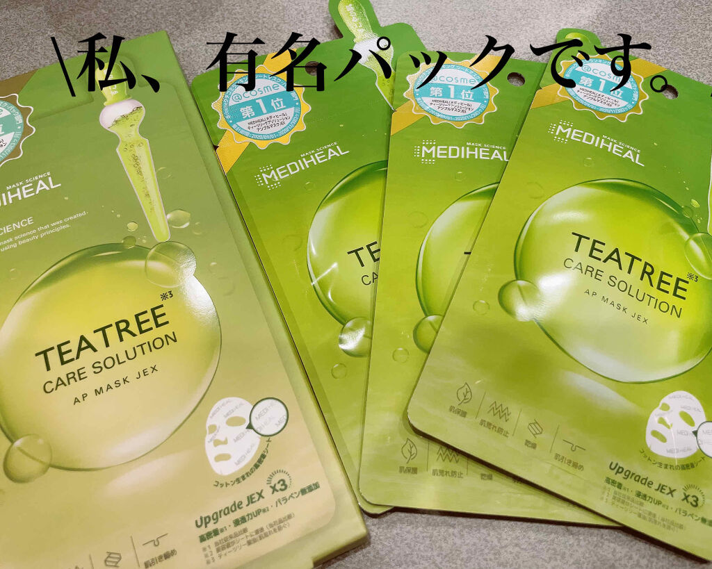 メディヒールの言わずと知れた名品。鎮静効果のあるティーツリーのフェイスマスク! 肌荒れしているときや、日焼けした後におすすめです。 使用感はさっぱりで、これだけでは保湿力が物足りないためクリームなどで蓋をすると良いと思います!