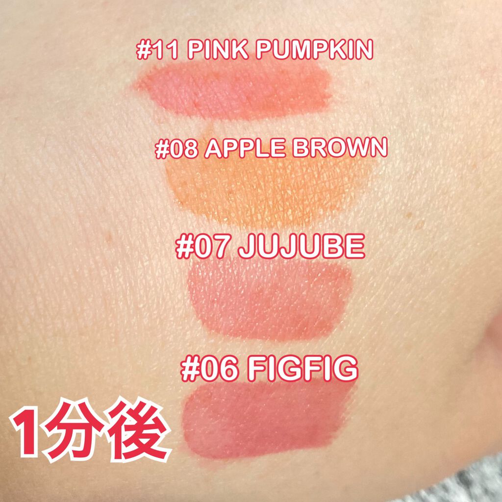 💋rom&ndロムアンドJUICYLASTINGTINTジューシーラスティングティント#08APPLEBROWN4枚目の写真は、塗布して1分後に拭き取った時の色の残り方。参考までに!ティント力もそこそこあって、瑞々しくて乾燥しません。...
