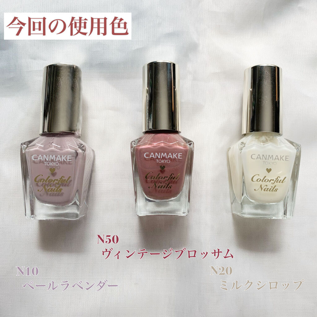 キャンメイクカラフルネイルズ今回はキャンメイクの限定色、N50ヴィンテージブロッサムを使用したネイルをしてみました🥀くすんだローズピンクが大人っぽいし偏光パールが入っていて地味にならない所がとっても良き!今回のネイルの配色としてはN50ヴィン...