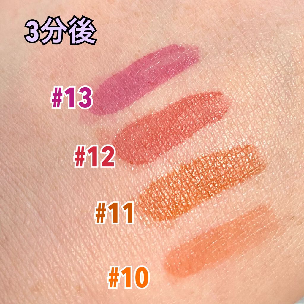 💋rom&ndロムアンドJUICYLASTINGTINTジューシーラスティングティント#13EATDOTORI4枚目の写真は、塗布して1分後に拭き取った時の色の残り方。参考までに!ティント力もそこそこあって、瑞々しくて乾燥しません。色...