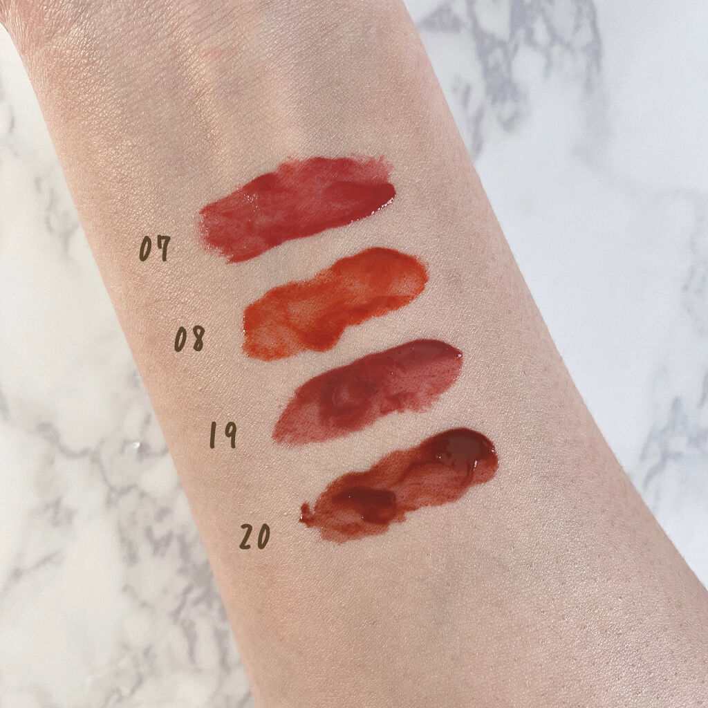- みずみずしいフルーツがきらめくようなシロップティント ①なめらかで潤いのあるリップを実現 ②果汁のシロップのようなカラー感 ③時間が経つにつれ凸凹を滑らかに密着しボリューム感を演出