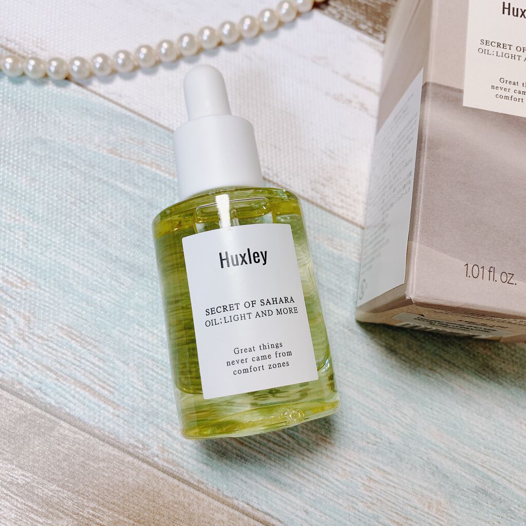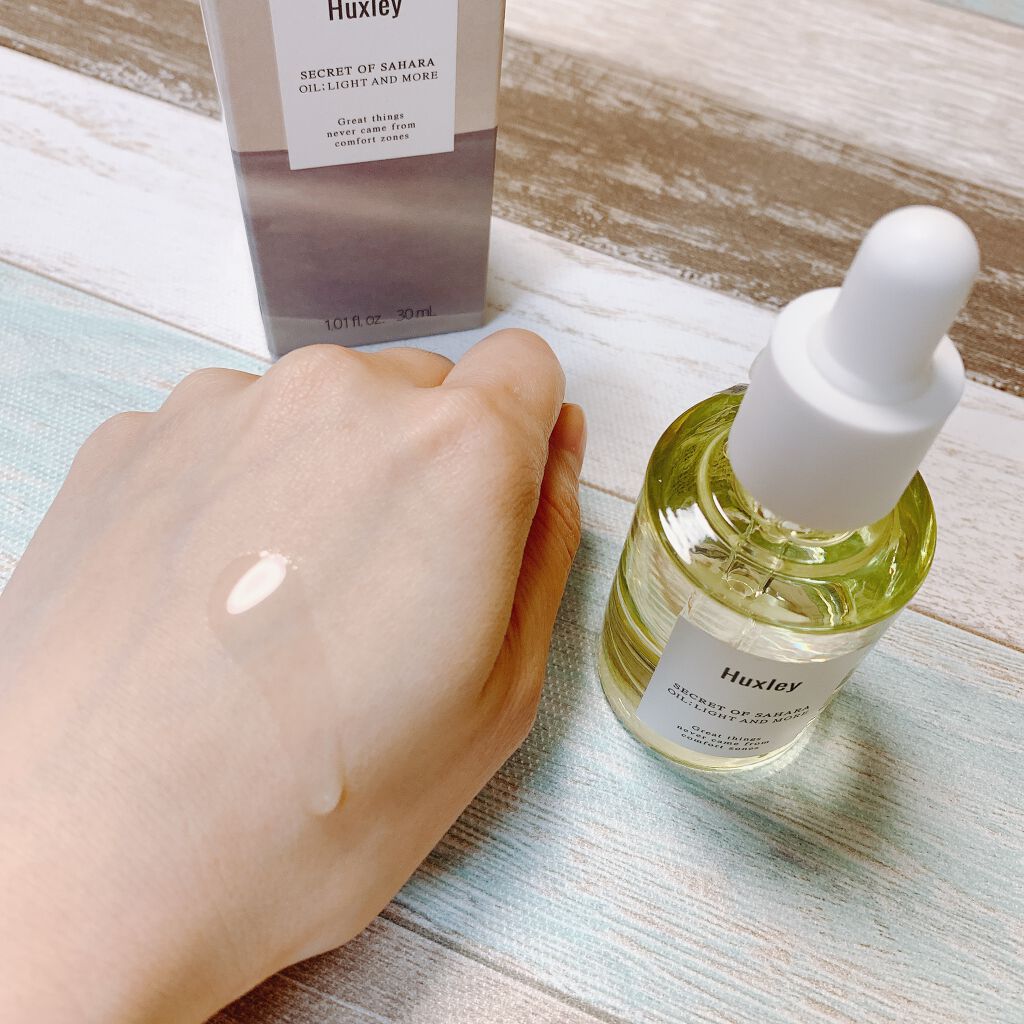 Huxleyオイル;ライトアンドモア大分前にLIPSショッピングにて購入しました😊オリエンタルなお花の香りのするオイルです♪香りも楽しむオイルって感じで香りは結構しっかり感じます🙌使用感はとても良くて、サラッとしてよく伸びます!ベタつきもなく...