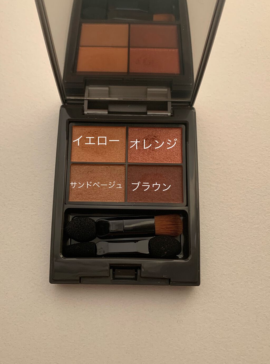 粉質も良く、しっとりしていて、粉飛びも気にならなかったです。 上段の左がオレンジマットで、猫ちゃんの絵が彫られててかわいいです。オレンジがビダミンカラーでかわいい😍 上段の右がラメになっています。しっとりしていて良かったです。仕事にしていくのは、難しいですが、オフの日に付けて、テンションが上がっていいです☺️ 下段の左はピンクのマットにラメがチラチラ入っています。 下段の右は赤にピンクぽさがある、マットにラメがチラチラ入ってます。下段は多色ラメでかわいいです。 上段はイエベさんに合いそう、下段はブルベさんに合いそう、 イエベさんは上段を主に使いながら、ポイントや上段と下段を混ぜたり使い方がたくさんあるパレットだと思います。 ブルベさんは下段を主に使って、上段をポイントに使う感じがいいと思います。 メイクが楽しくなる、かわいいアイシャドウだなと思いました。 イエベさんにも、ブルベさんにもオススメです。