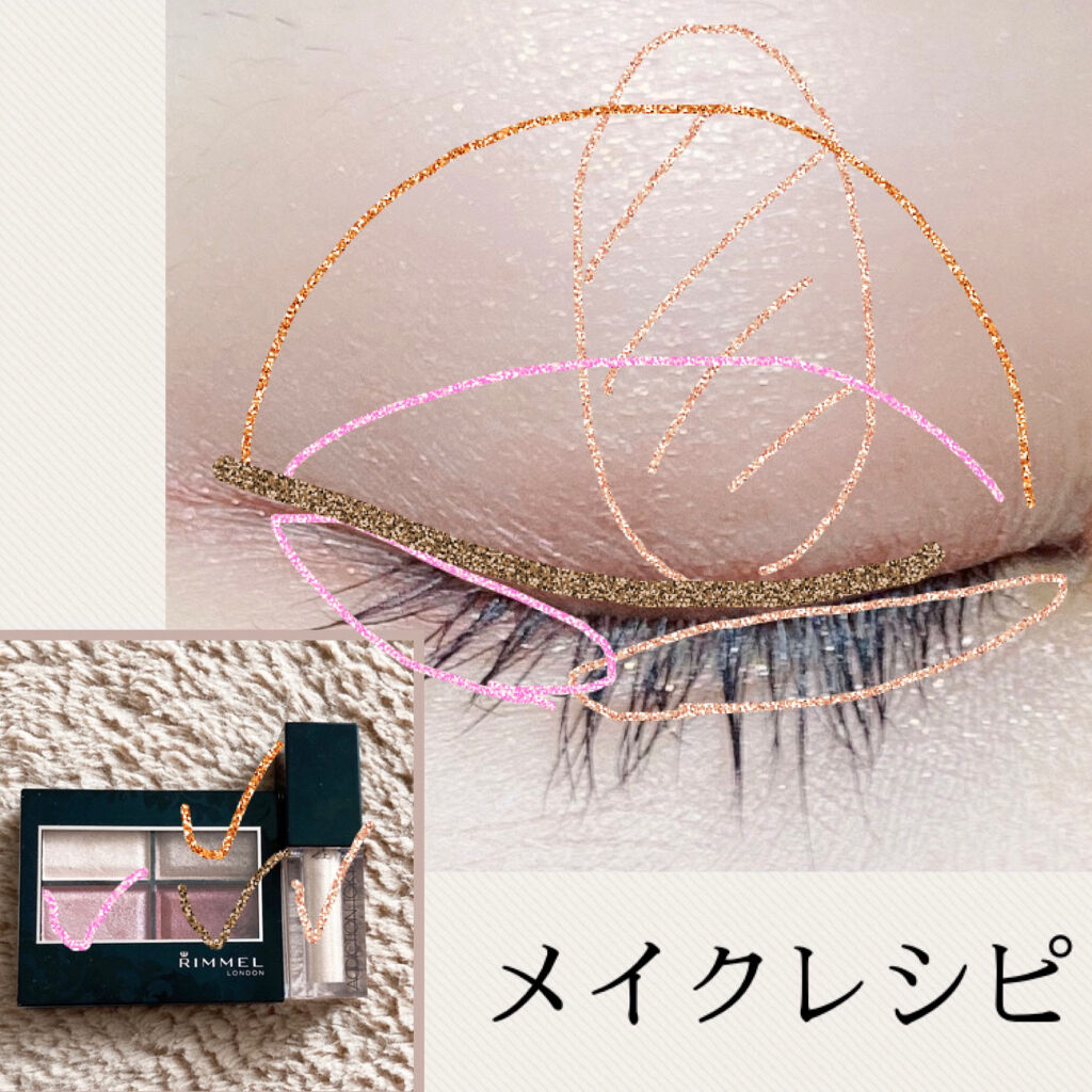 本日のアイシャドウ♡#リンメル#ロイヤルヴィンテージアイズ019メープルコーラルこちらを使って仕上げました。ラメ足しとして、#Fujiko#足しパレ03うるみラメの、1番左側のホワイトラメをまぶたに✨✨✨涙袋も、03うるみラメで仕上げました。...