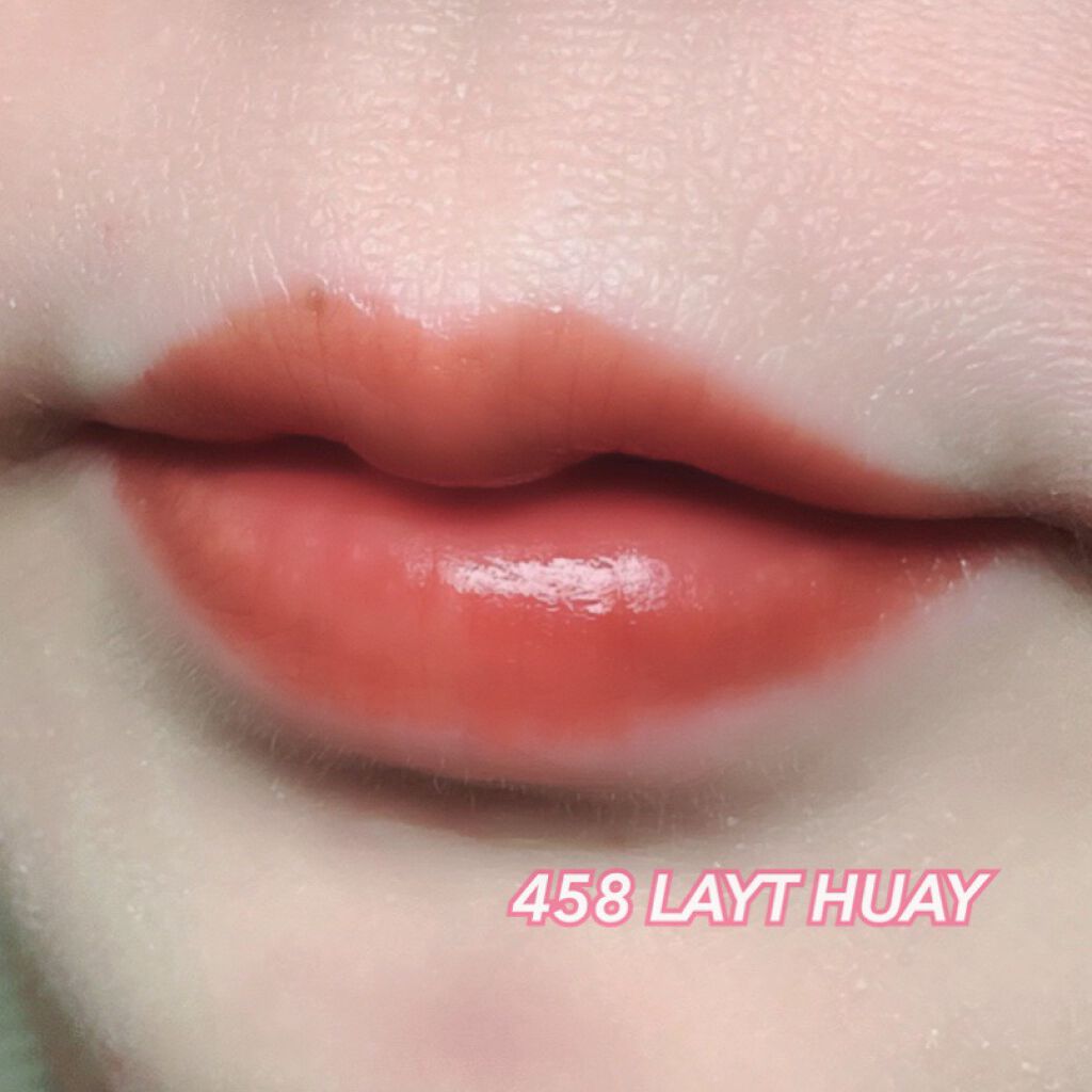 花の香りがします! 高発色でパキッとした朱色です! ティント効果もきちんと感じられてティッシュオフしても潤い感は残っている印象です。 荒れにくさは感じました。食事とかで落ちてしまいますし、シワにたまる感じがあって少し苦手に感じました(^^;;
