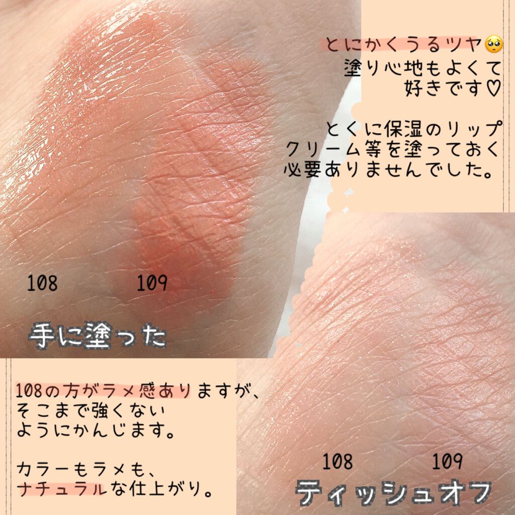 | 口紅・グロス・リップライナーランキング第49位 | ツヤツヤに仕上がりますがみずみずしく軽いテクスチャーです! ムラになりにくく塗りやすかったです! | 詳細を見る | |