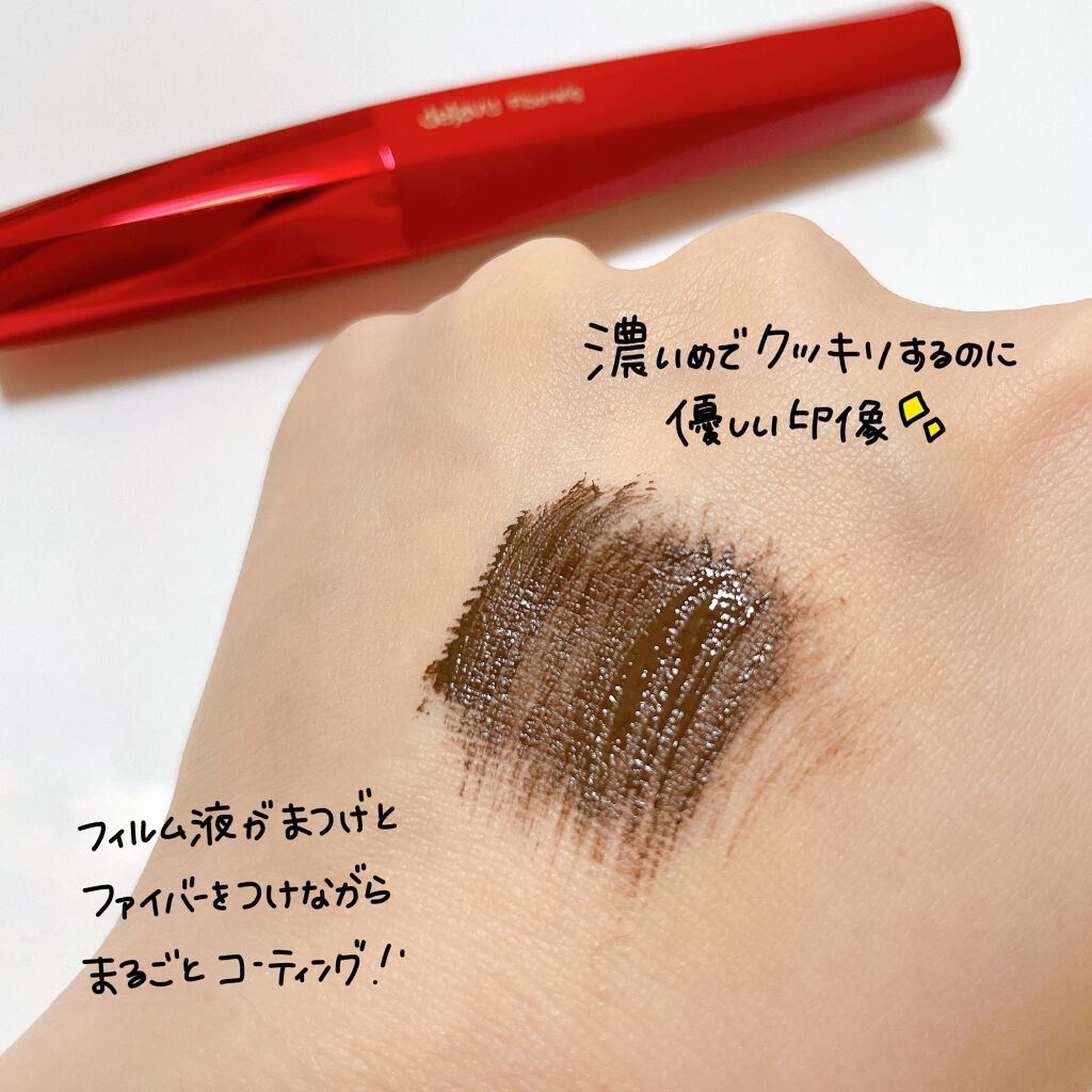 太め長めのブラシが特徴のロングタイプ。 細かい繊維がたっぷり入ってるけど何回か重ねてもダマになることなくキレイに仕上がるのが嬉しい😍💓 ツヤがあって濃密な発色の黒なので目元はくっきりするけど意外と自然で。 唯一、定番のブラックとブラウン以外でニュアンスカラーが定番色として展開されているので色選びも楽しいと思います✨