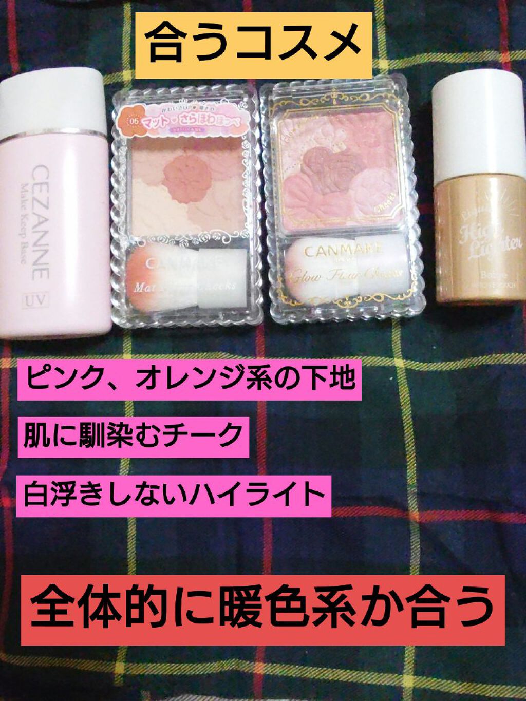 イエベはオークル ブルベはピンクオークル が無難 マキアージュ ドラマティックパウダリーEX オークル20 rom&nd ヌーゼロクッション 04ベージュ 23 キャンメイク マットフルールチークス 05 マットパンプキン キャンメイク グロウフルールチークス 11 チャイフルール Witch's Pouch ミオ ブラッシャー レベッカレッド 11 CEZANNE パールグロウハイライト シェルピンク 04 CEZANNE ハイライトスティック01パール入りホワイト Witch's Pouch リキッドハイライター02ベージュ ブランザーという 肌の色味を整える色黒向け専用コスメがあるらしいけどお店では見かけないため用途は違うけどシューティングや暗めのチークで代用 CANMAKE シェーディングパウダー アイスグレーブラウン 04