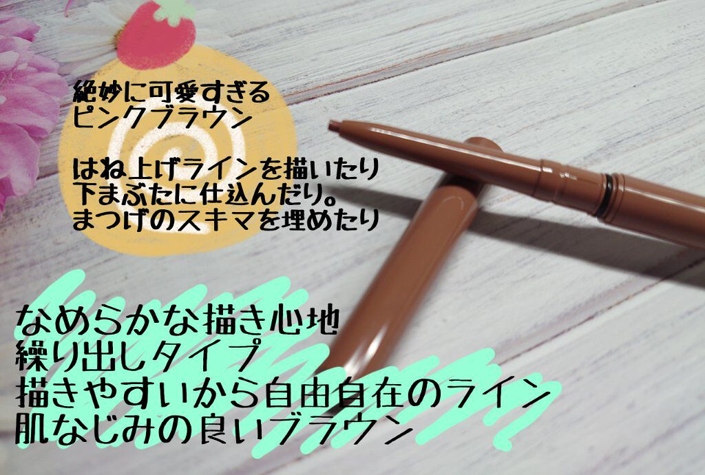 抜け感のあるニュアンスカラーだから、下瞼のラインもきつくなりすぎないところが◎ なめらかな描きごこちで、2mmの芯が太すぎず細すぎずで折れにくいよ。 繰り出しても戻るタイプなのが便利。