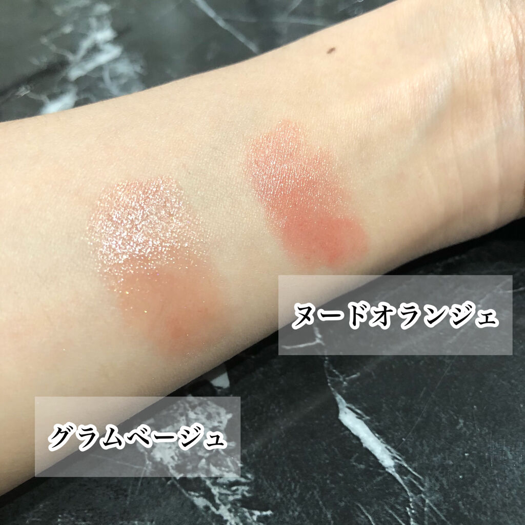 偏向ラメが散りばめられて ツヤツヤでジュワッとした発色のhinceチーク マルチ仕様でチークのほかアイシャドウベースにも。 指塗りの方がちゃんと発色します。 ブラシだとかなり淡め。 ハイライトっぽくもなる。 ラメが細かくてとても上品な感じです⸜❤︎⸝