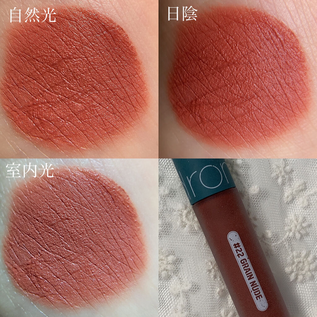 - 付け心地0gのまるで無重力ティント ①軽くふわっさらっとした唇を表現 ②なめらかにどこまでも薄く密着し、様々な表現を可能にするテクスチャー ③完全なマットではない、ほんのりツヤのある、セミマットタイプ