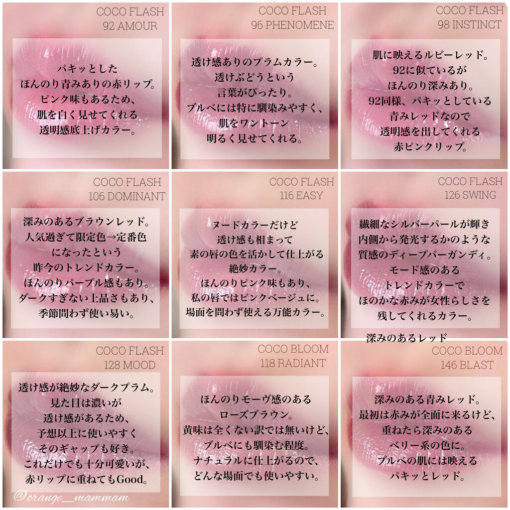 \瑞々しい艶リップ。手持ち全7色レビュー/#CHANELココフラッシュ92アムールドゥシャネル96フェノメーヌ98アンスタン106ドミナン116イージードゥシャネル126スウィングドゥシャネル128ムード-⚠...
