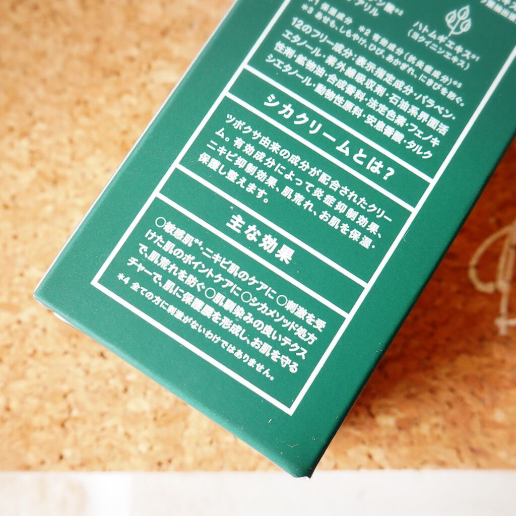 - 美容大国 韓国で最も信頼されている“シカクリーム”が、日本独自処方の医薬部外品クリームになって登場! 韓国シカクリームのコンセプト成分「ツボクサエキス」と、日本古来の植物エキスを配合しました。 マルチな悩みをケアし、トラブルの無い肌に。 肌なじみのいいテクスチャーで使いやすく、肌に保護膜を形成し、外部刺激から肌を守ります。 また、抗炎症有効成分のグリチルレチン酸ステアリル配合により、肌荒れやニキビを防ぎます。 また、12のフリー(*1)で、敏感肌の方でも安心してお使いいただけます。 いつものお手入れの後、適量を手に取って肌の上に優しく塗り、手のひらでもむように抑えます。 顔全体でも、肌荒れが気になるところに部分的に使用するのもおすすめです。 (*1)パラベン・エタノール・紫外線吸収剤・石油系界面活性剤・鉱物油合成香料・法廷色素・フェノキシエタノール・動物性原料・安患香酸・タルク 表示指定成分不使用