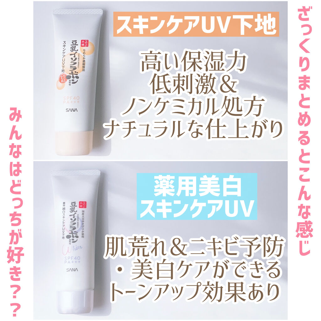 豆乳のスキンケアブランド「なめらか本舗」の夏にぴったり☀️美白*ケアアイテム紹介するよ🧡こちら、なめらか本舗様からいただきました🫧・サナなめらか本舗スキンケアUV下地NC・サナなめらか本舗薬用純白スキンケアUV下地N[医薬部外品]・サナなめら...