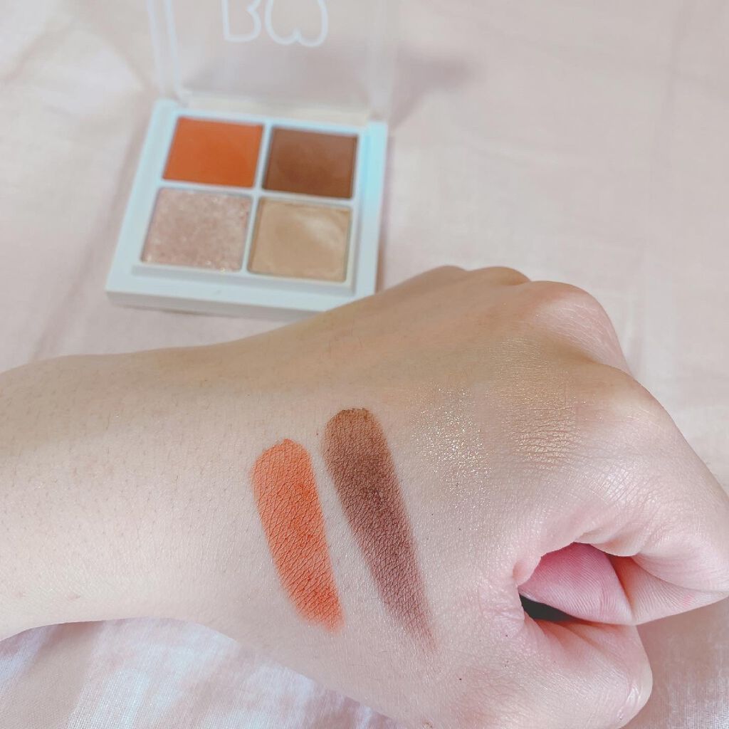 秋にぴったりの深みアプリコット🍁 アイシャドウ3色にハイライトがセットされているので全体に統一感が出るのが好き☝🏻 05 予感のアプリコットは、マット質感の鮮やかオレンジブラウンとベージュ系のラメやハイライトの組み合わせ。 鏡やチップブラシが付いていないで2,000円弱なのと、蓋が壊れやすいのが気になって普通に買うのは正直抵抗があるので、セルレで買えるのはとてもありがたい🤣