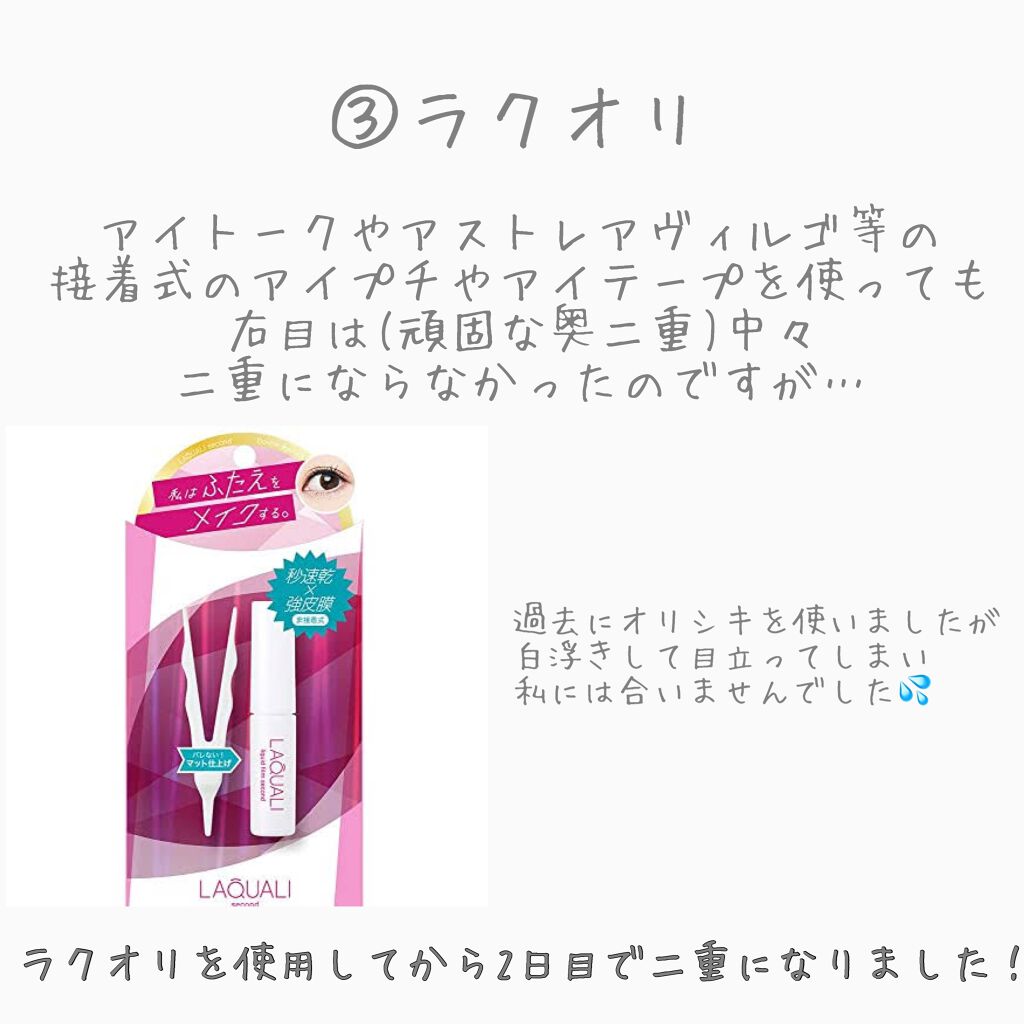 こんにちは!きいろです🌻🍋今回は奥二重に戻ってしまった時のアイプチの仕方です!※メイクする時は最後に行います簡単にまとめると…①マッサージ②まつ毛を上げる③ラクオリを塗るという感じです!📣📣📣ラクオリを塗る時のポイント📣📣📣厄介な奥二重の線を...