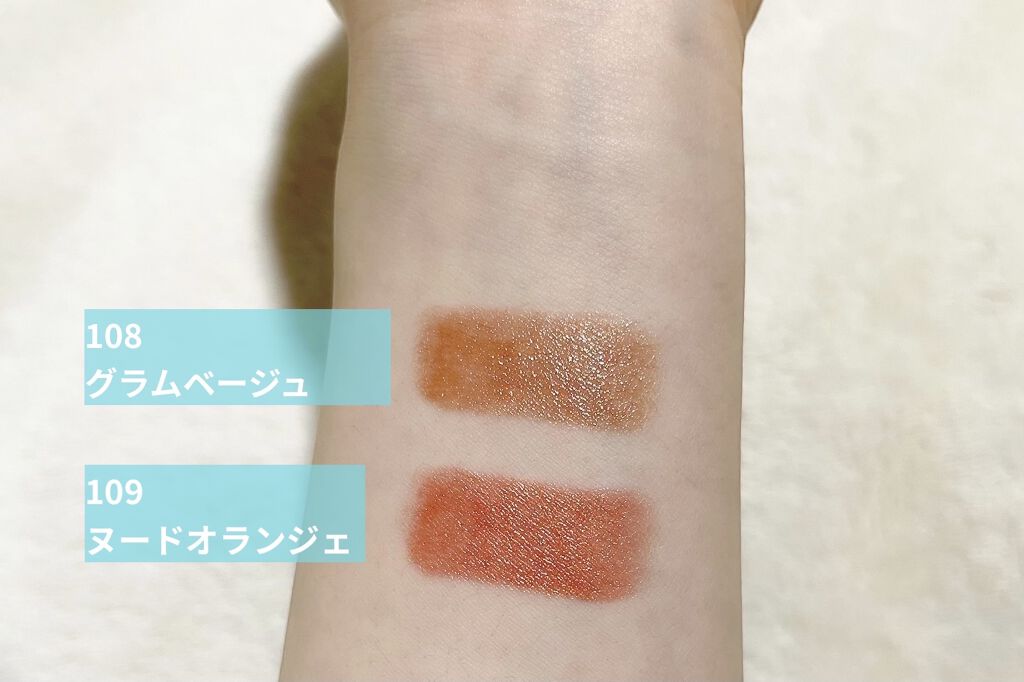 「ほんのりローズを感じるベージュで、青みにも黄みにも寄り過ぎないニュートラルカラー」との事ですが、ブルベ夏の私が使った所かなりオレンジ寄りに発色しました。 ローズカラーとあるので使いやすいかな?と思いましたが、私は結構黄みを感じました💦 もしかしたらブルベだと同じように発色する方もいると思いますので、是非店頭で色味を確認してから購入する事をおすすめします。 ナチュラルな印象に出来るので普段使いしやすいですよ〜✨