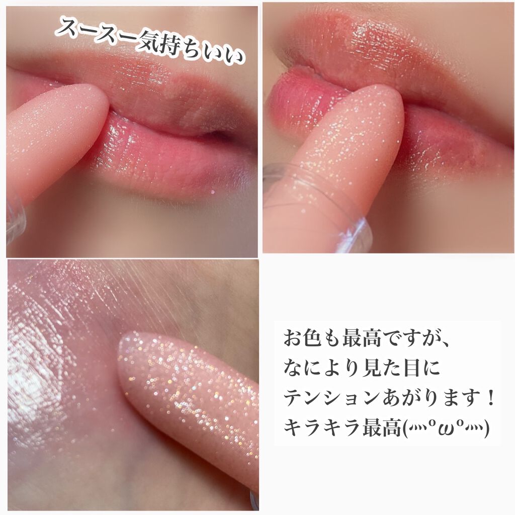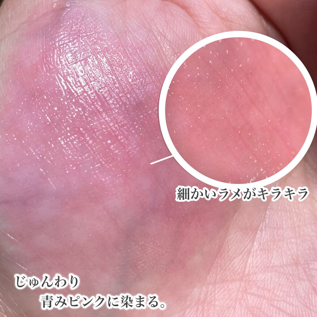 - 3分であなた色のジェリー膜に変化!魔法みたいにキラキラ輝くグリッターがまぶされたティントリップ。3分でその人ならではのカラーに染まる、カメレオンのようなティントリップです。体温でとろけてピタッとジェリー膜に変化。厚いツヤが生まれる『グローアップ構造』で唇にうるおいを与えます。美容成分も配合なのでメイクしながらリップトリートメントも叶います。