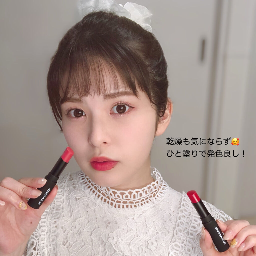 セミマットな仕上がりのティントリップです! 生クリームのような、軽い付け心地のテクスチャで、伸びが良く、発色もしっかりとしてくれるので、濃いメイクが好きな方におすすめです! 03の色味は、ブルベの方に良さそうな白味のあるカラーでした!私の好みで、特に今の時期にピッタリなカラーなので、最近よく使っています! セミマットだから、髪の毛がくっついたりもなくて、お気に入りです! 乾燥もしにくくて、そこも良かったです!