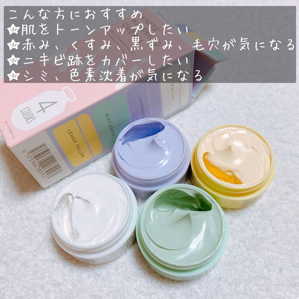 - 韓国発の牛乳タンパク質配合ウユクリーム。塗った瞬間に、毛穴やくすみをカバーして、くすんだ肌をトーンアップさせます。塗った瞬間、水が出てくるウォータードロップ処方採用で、生クリームのようななめらかなテクスチャー。18種類の美容成分配合で、瑞々しい透明感のある肌に仕上げます。 数量限定で血色感アップの「ペールピンク」、透明感アップの「ラベンダー」が新登場。塗った瞬間に、毛穴やくすみをカバーして、くすんだ肌をトーンアップさせます。塗った瞬間、水が出てくるウォータードロップ処方採用で、生クリームのようななめらかなテクスチャー。18種類の美容成分配合で、瑞々しい透明感のある肌に仕上げます。