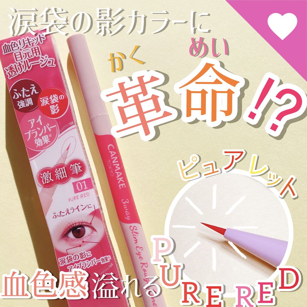 - ふたえ強調・涙袋の影・アイプランパー効果(※)に使える 激細筆の目元用透けルージュライナー 自然でリアルな血色を叶える、絶妙な透け発色ライナー♥ まるで目元にルージュを塗ったかのように血色感を与え、かわいい印象に仕上がります。 描いた線が太くならないよう、筆を根元から細くして 描きやすい距離と適度なコシになるように、短い筆に仕上げました。 汗・皮脂・こすれに強く、朝描いたラインも長時間キープされます。 (※メイクアップ効果による)
