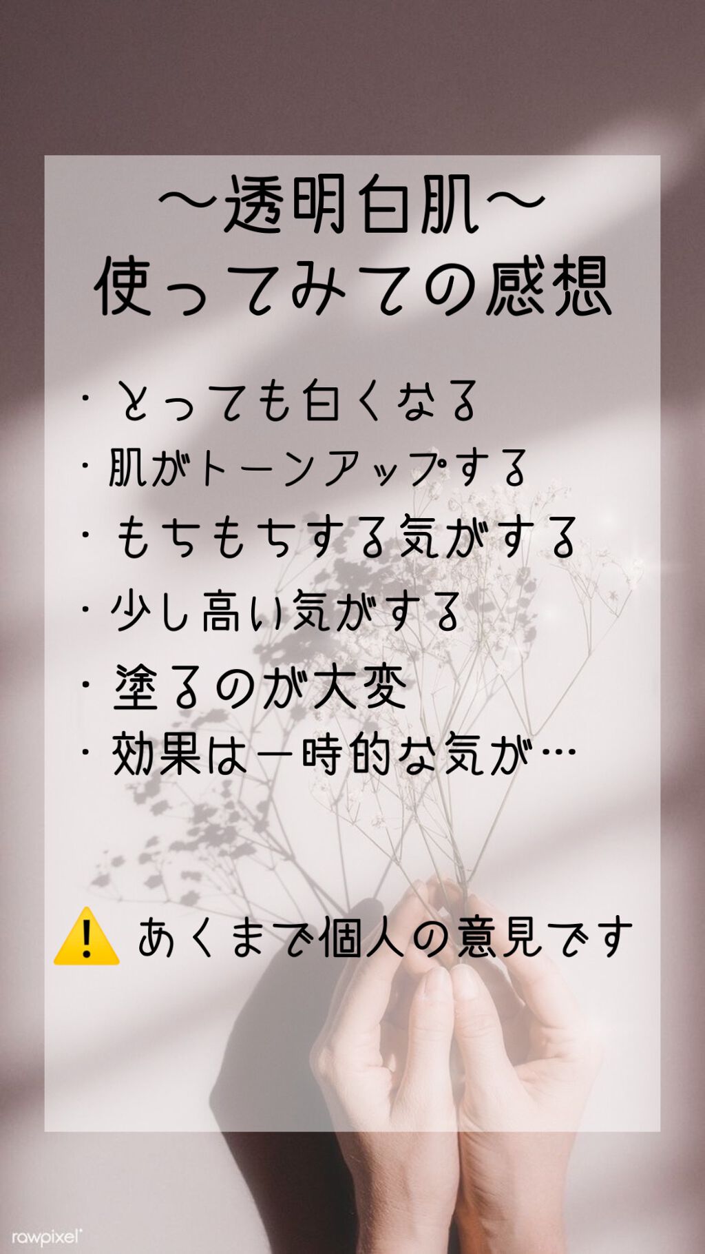 ずっと買おうと思って買えてなかった透明白肌のパックやっと出来ましたぁ〜♡『使ってみて』リピートは⭕意外とすぐに効果が目に見えて分かるのでとってもいいと私は思いました。塗るのは面倒ですが、塗りやすく伸びも良かったです。『私のお肌事情』私は元々地...