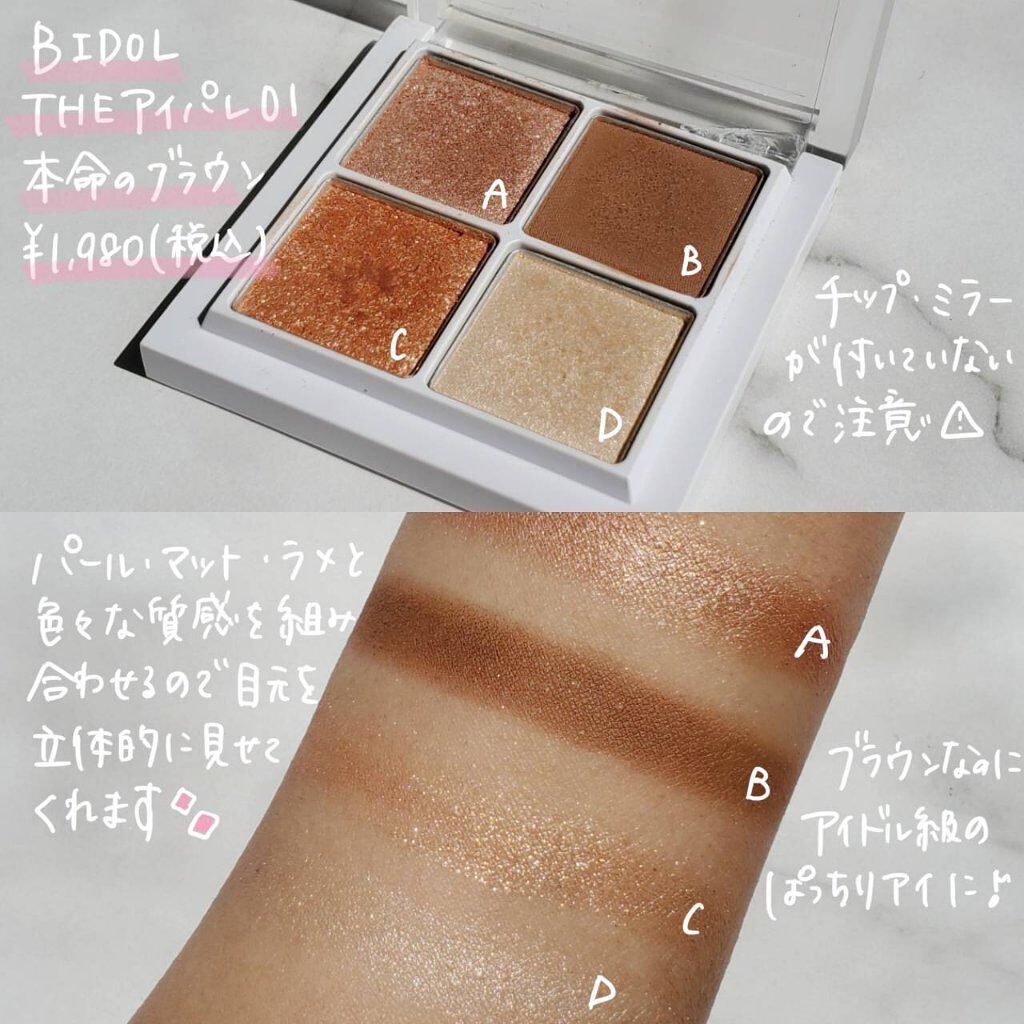 \BIDOLTHEアイパレ全色レビュー/いつもご覧いただきありがとうございます☺︎今日はBIDOLのTHEアイパレを全色比較してみました!詳しくは画像をご覧下さい▹▸ちなみに私の推しカラーは01本命のブラウンと04強がりのピンクグレージュです...