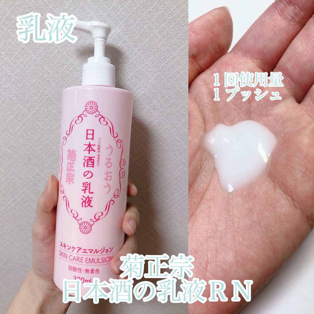 - うるおいを与えて肌の状態を整える日本酒 ※(コメ発酵液・保湿成分)配合の乳液です。 保湿効果の高いアミノ酸(グルタミン酸・アルギニン・ロイシン・グリシン)とセラミドをさらにプラスしました。 ※菊正宗の純米吟醸酒を配合 弱酸性・無着色